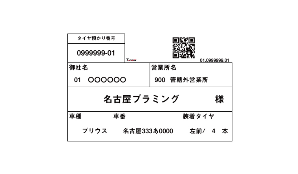タイヤ管理用ラベル/QRコードにてタイヤを1セットずつコンピュータ管理
